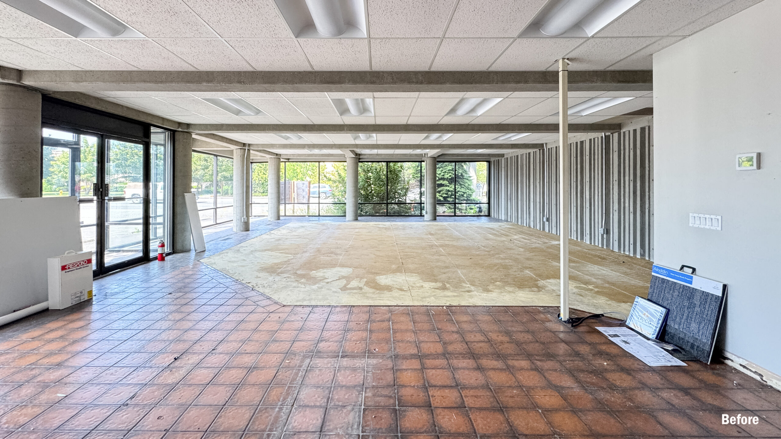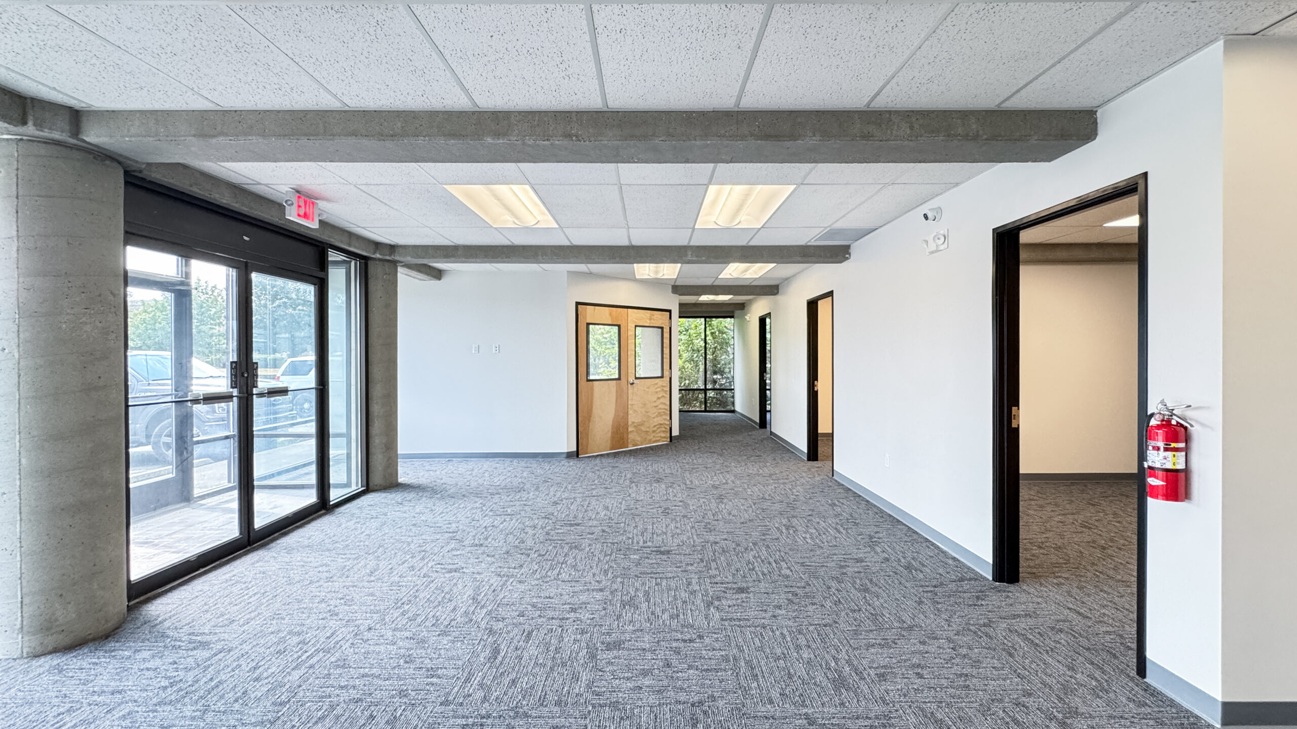 We recently wrapped up a tenant improvement project that brings a sleek, industrial vibe to the space. Previously an empty shell in an older building, the interior has been thoughtfully transformed with refreshed finishes and a functional layout—creating a modern, welcoming environment for new tenants. The work began with demo of the existing flooring and installation of new carpet tile. We reconfigured the layout to include a new ADA-compliant restroom, added a break room and conference room, and built three private offices. Updated lighting and IT/data infrastructure completed the transformation. Original exposed concrete elements remain, adding a hint of industrial character that offsets the polished new finishes.